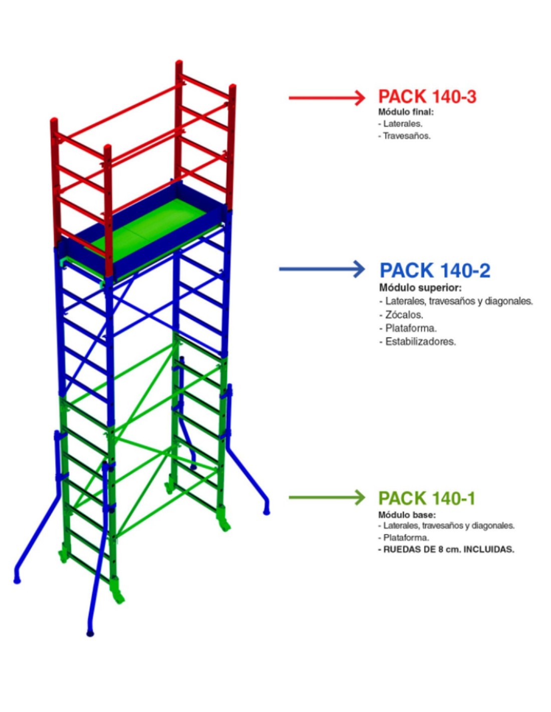 Andamio 3 M Altura 140x60 CM Ruedas PACK-140- 1 Y 2