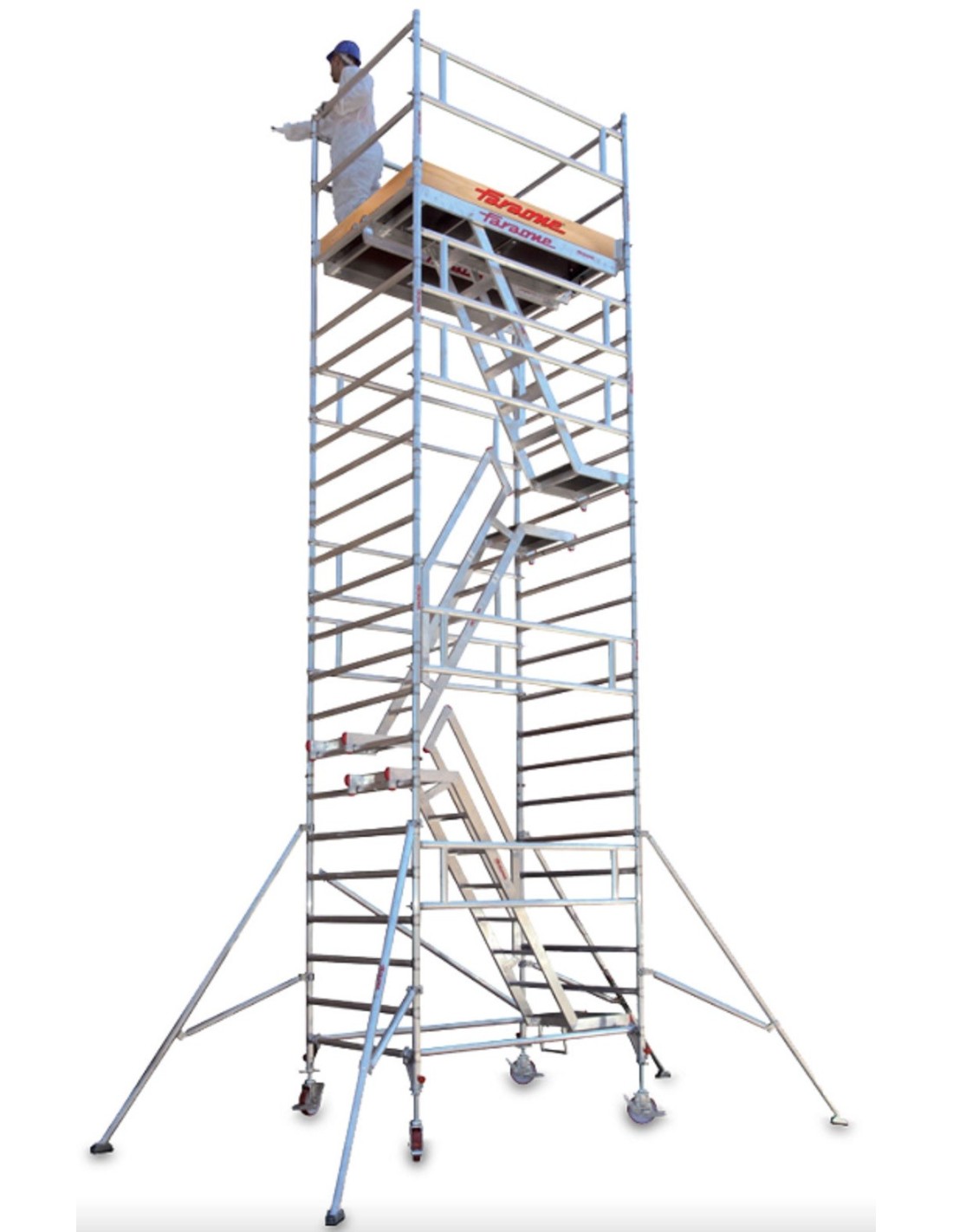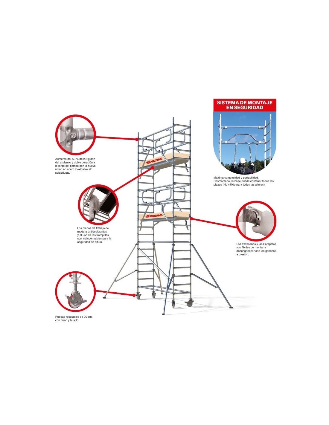 La subida es cómoda gracias a una menor distancia entre peldaños, 7 peldaños por cada lateral en lugar de los 6 que se suelen poner en los laterales de los andamios disponibles en el mercado.