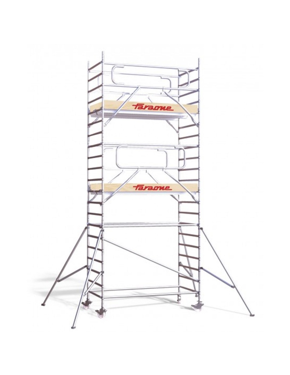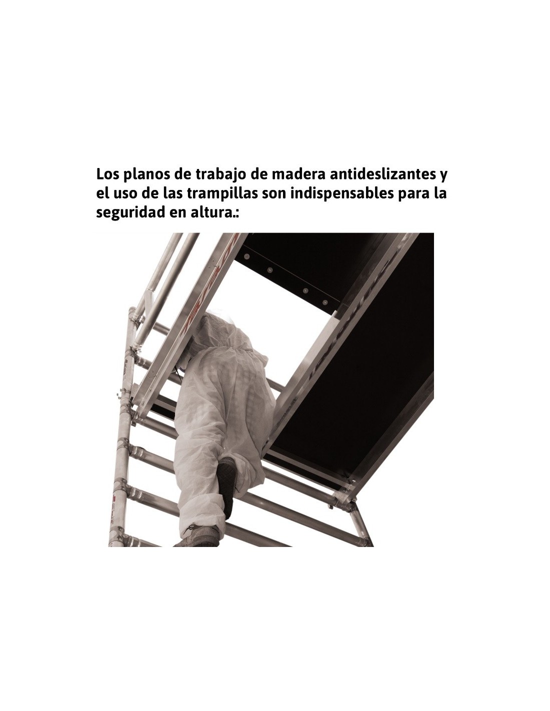 La subida es cómoda gracias a una menor distancia entre peldaños, 7 peldaños por cada lateral en lugar de los 6 que se suelen poner en los laterales de los andamios disponibles en el mercado.