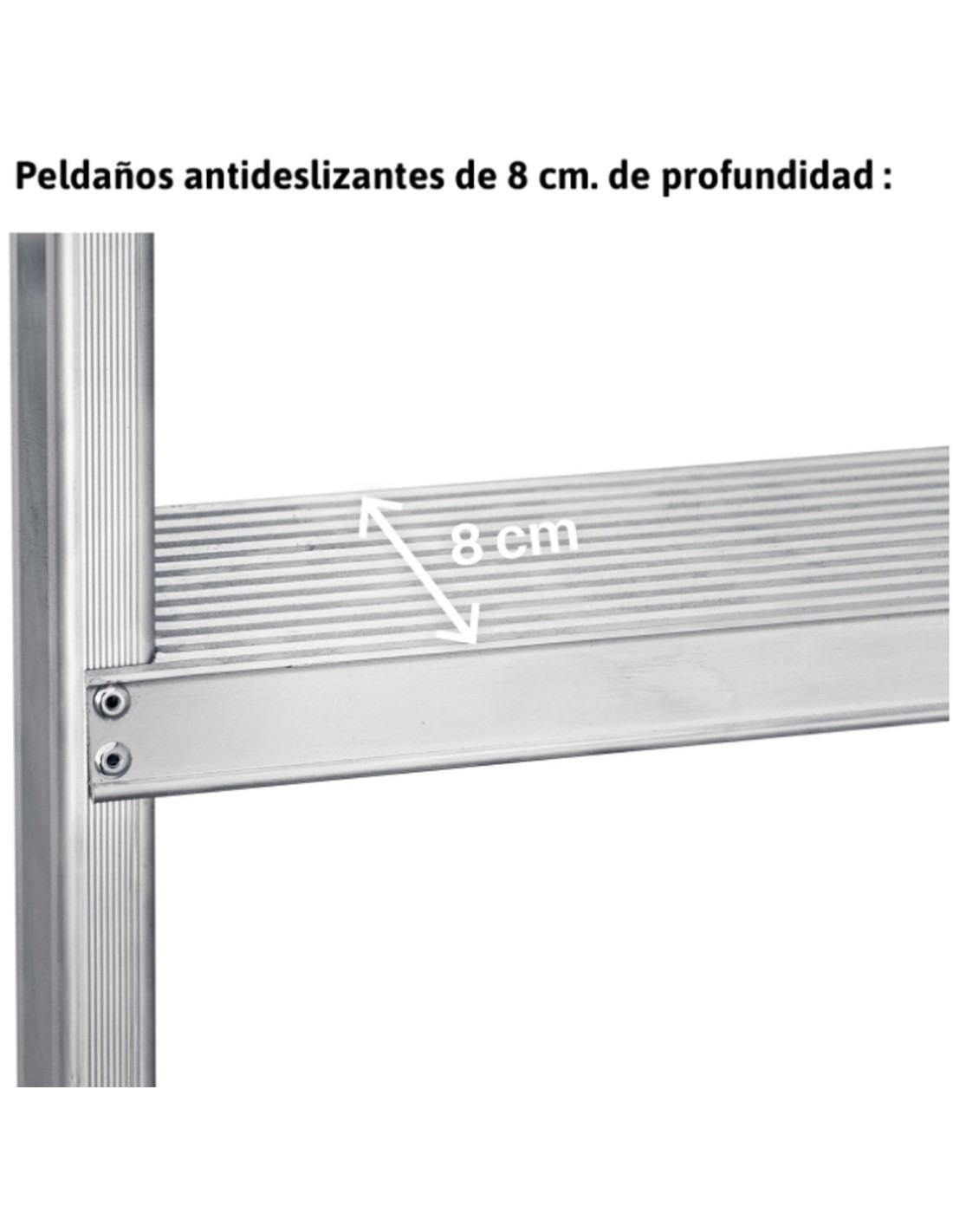 - Peldaños antideslizantes de 8 cm.