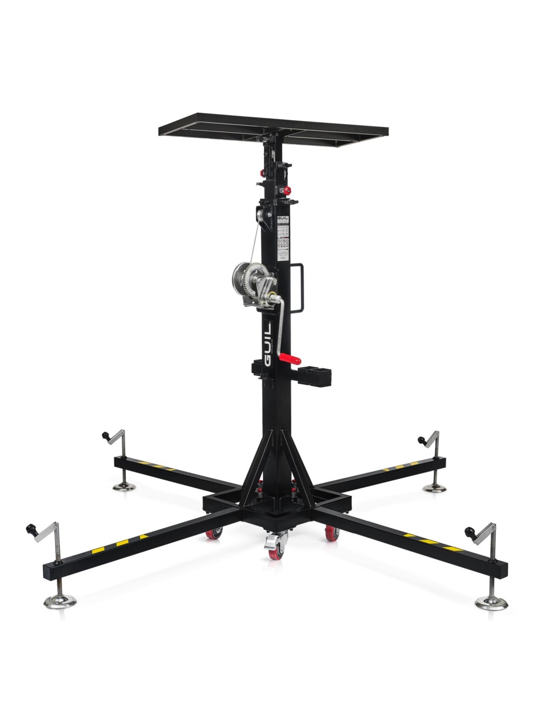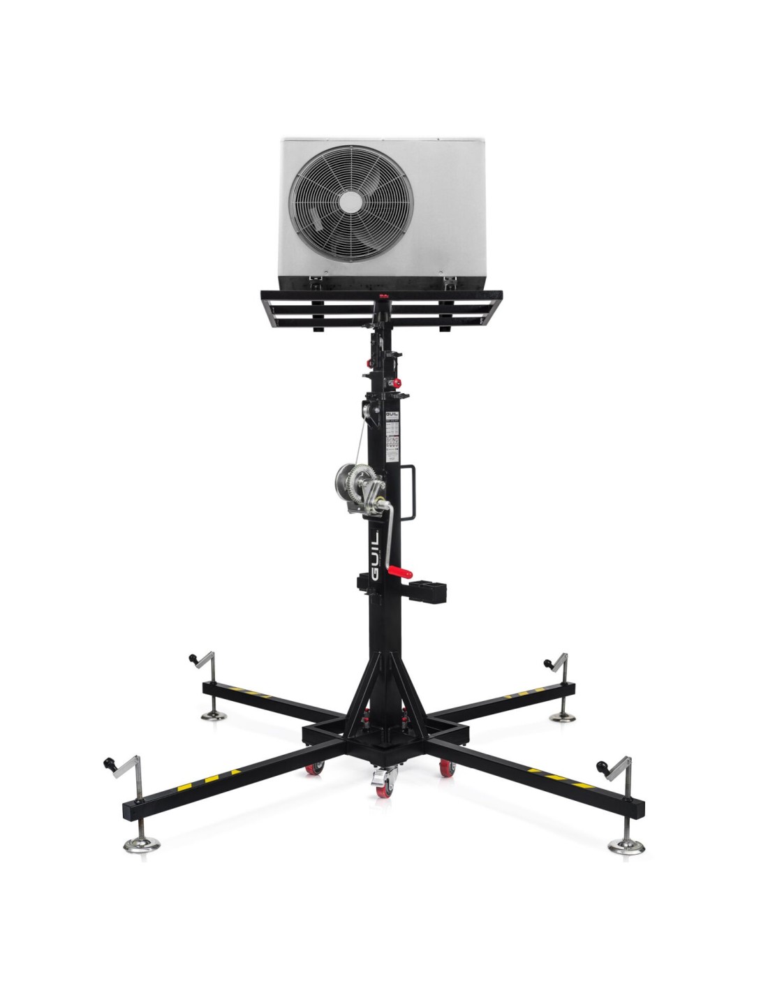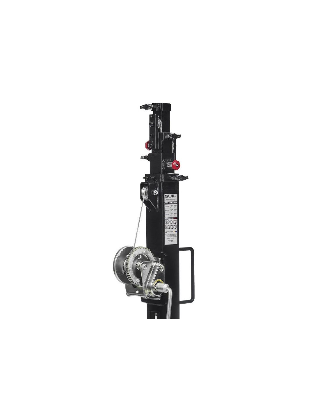 Torre telescópica de elevación mecánica certificada para la elevación de cargas de hasta 150 kg a una altura máxima de 4,50 metros.