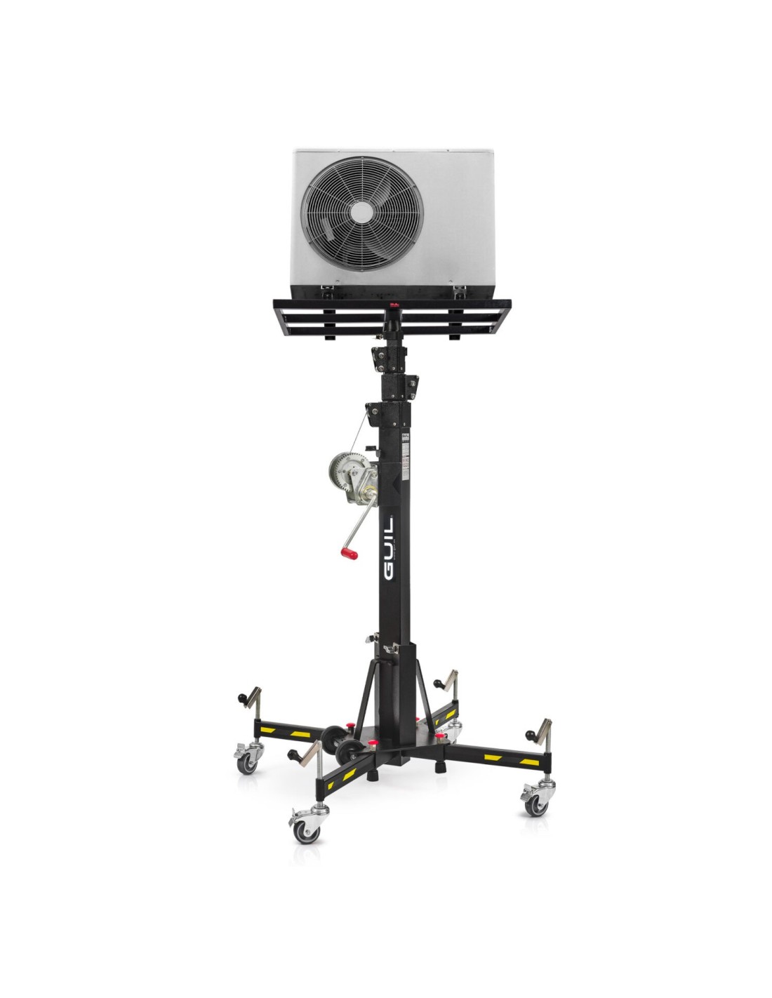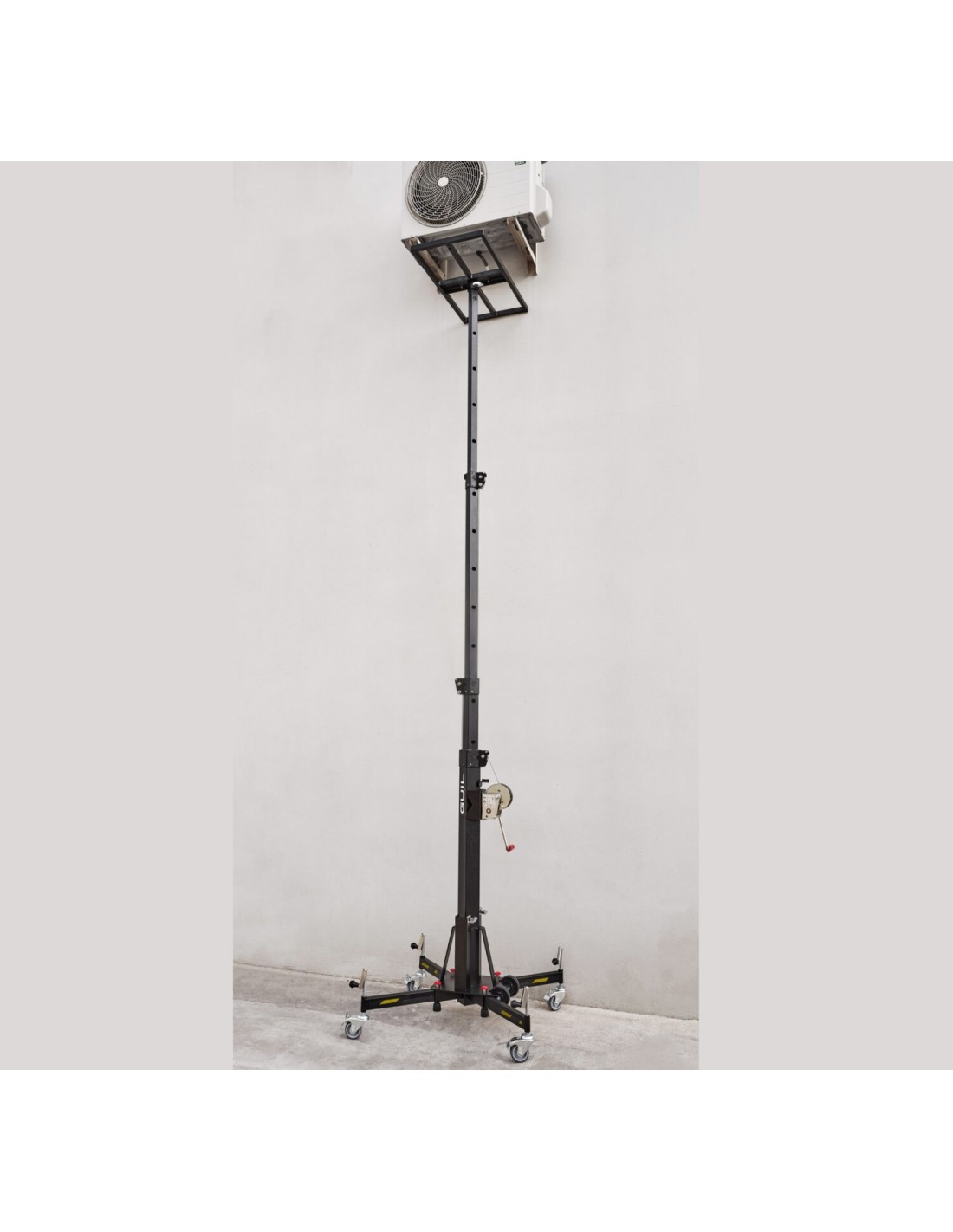 Elevador telescópico compacto y ligero diseñado para la elevación de cargas de hasta 125 kg a una altura máxima de 4,58 m