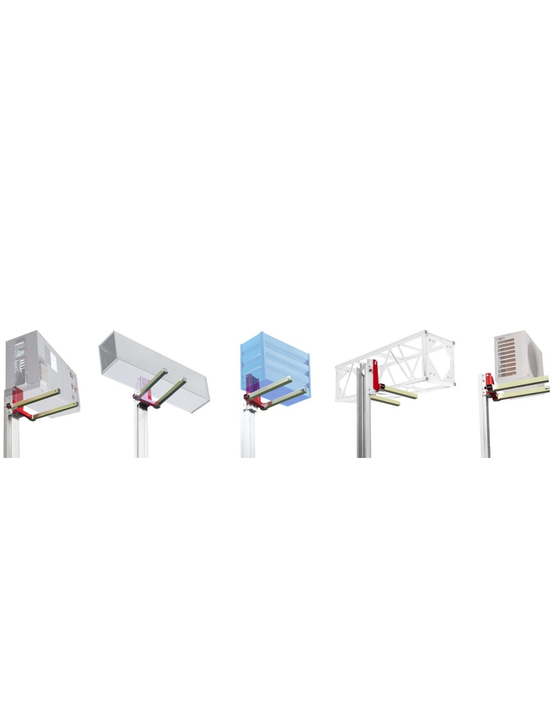 Nuestros elevadores tienen un diseño especial, que permite colocar las patas en su parte frontal o trasera, pudiendo así acercar la torre a la pared en caso de necesidad. Estas patas telescópicas están equipadas con ruedas con husillos niveladores. (Nota: Disponible bandeja y contrapesos)