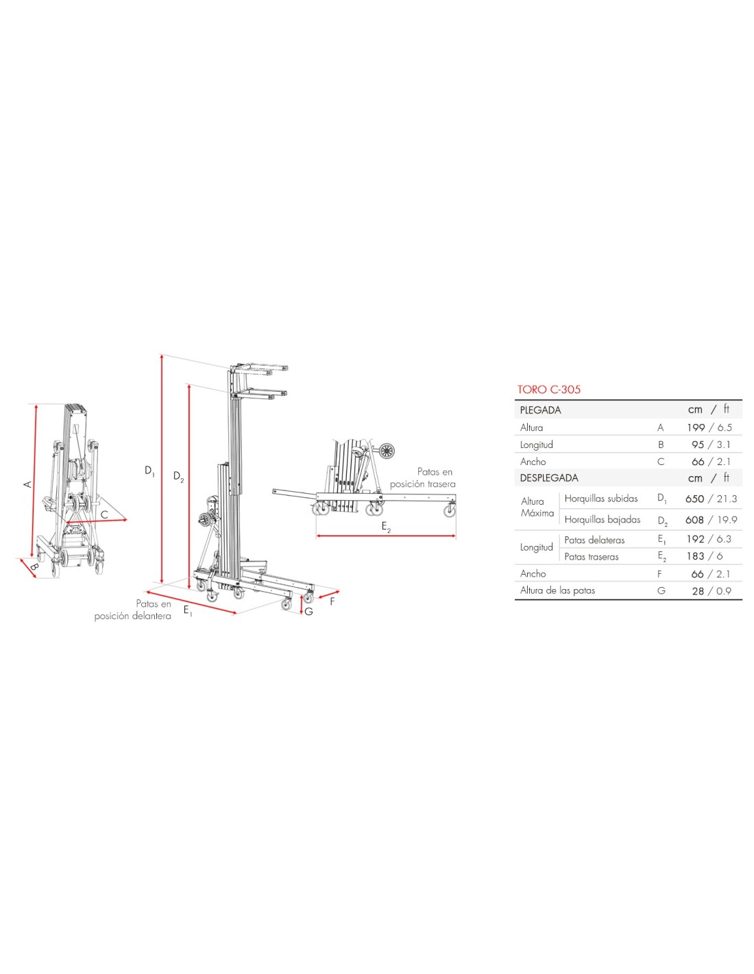 Su gran capacidad de carga, su amplia variedad de aplicaciones y su sencillo manejo, hacen del Elevador de Carga TORO C-305 un complemento perfecto para cualquier tipo de trabajo.