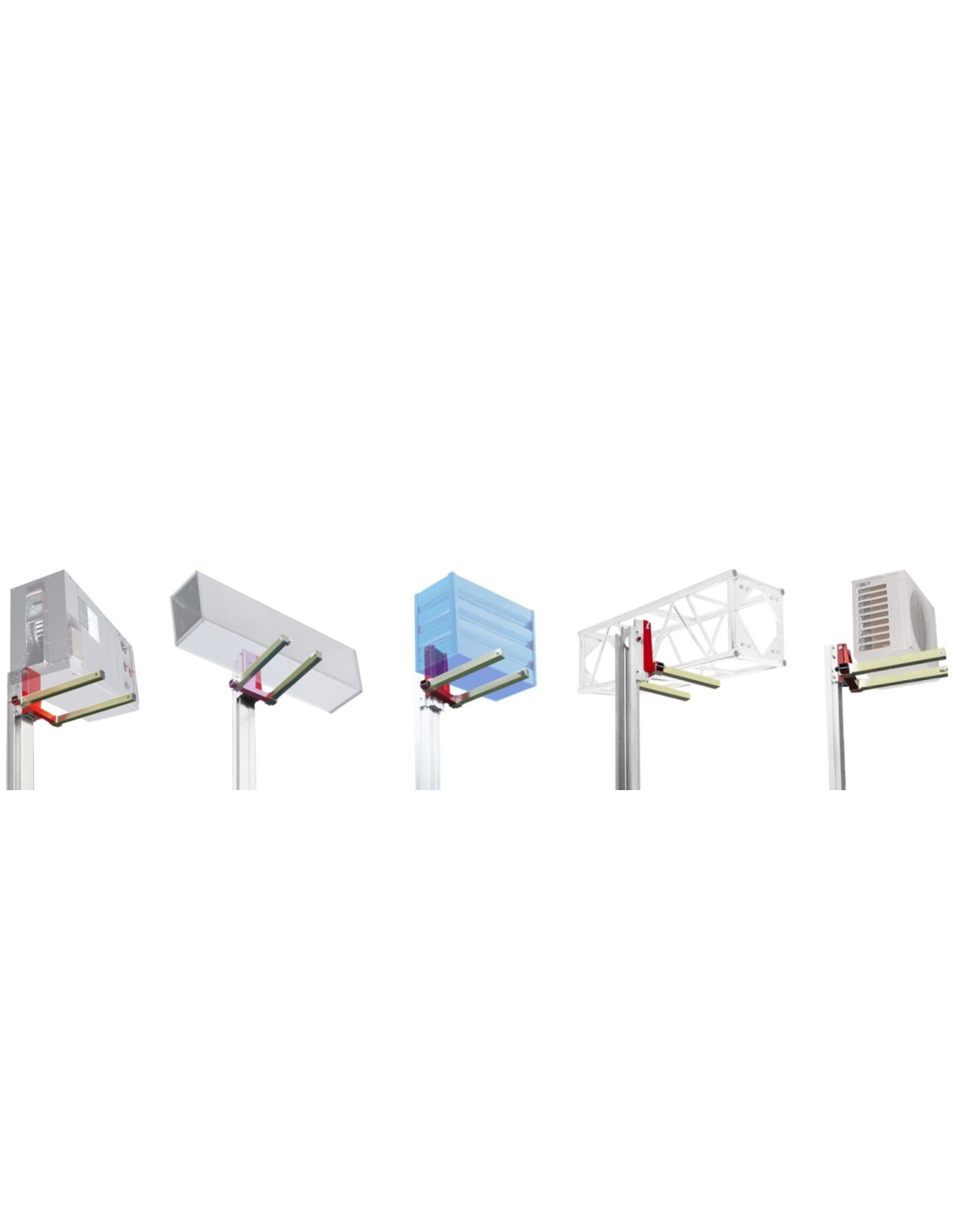 El Elevador de carga, provisto de 2 perfiles de aluminio extensibles mediante juegos de poleas, se suministra con todos los componentes y accesorios necesarios para su utilización.