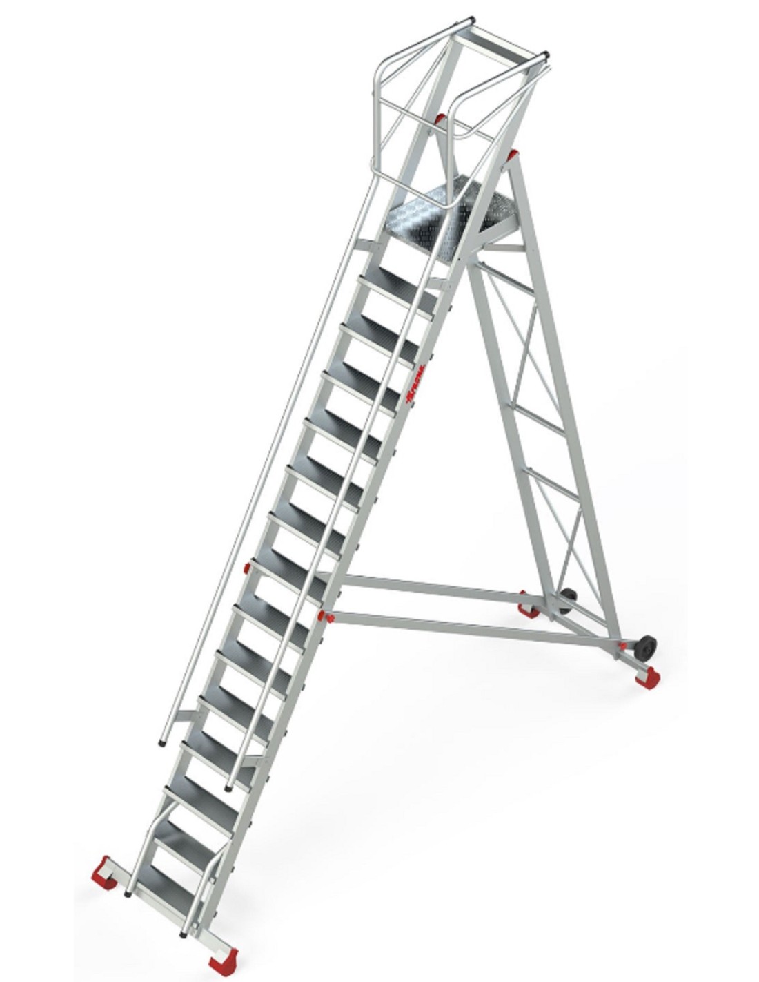 Escalera de almacén con plataforma y ruedas 17 Peldaños