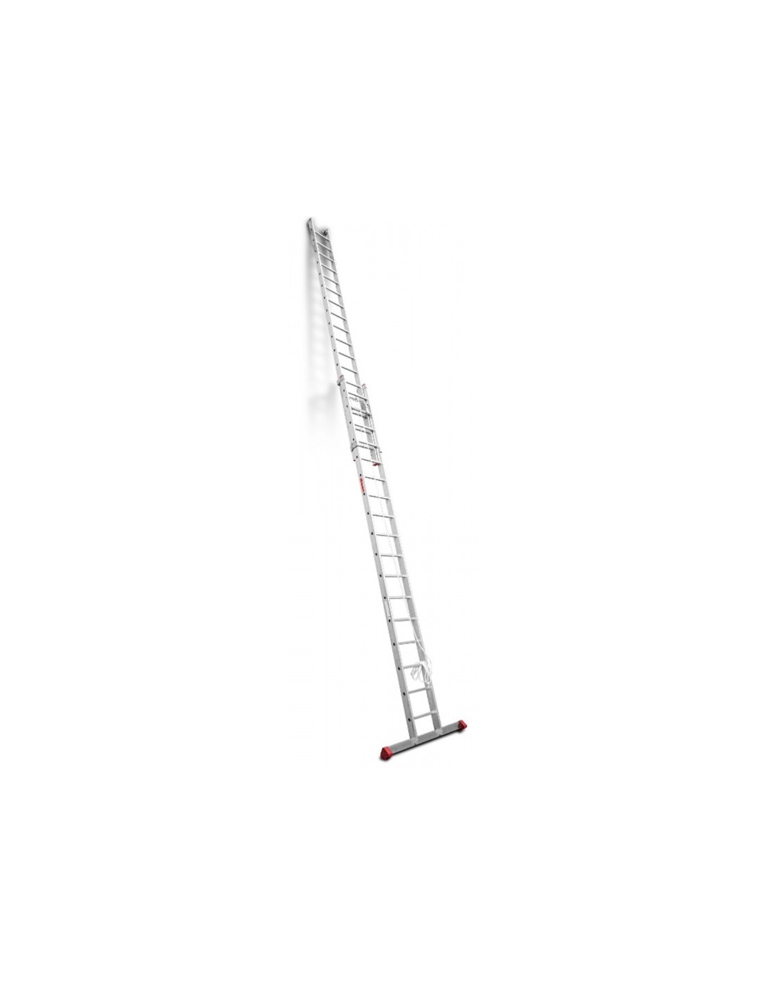 El modelo EN200 está fabricado en aluminio, con dos tramos que corren entre sí mediante un sistema de poleas accionado mediante cuerda, base estabilizadora con tacos de alta adherencia, par de ruedas superiores para asegurar apoyo y agarre a la pared y peldaños de 3 cm. Disponible en varias alturas y peldaños.