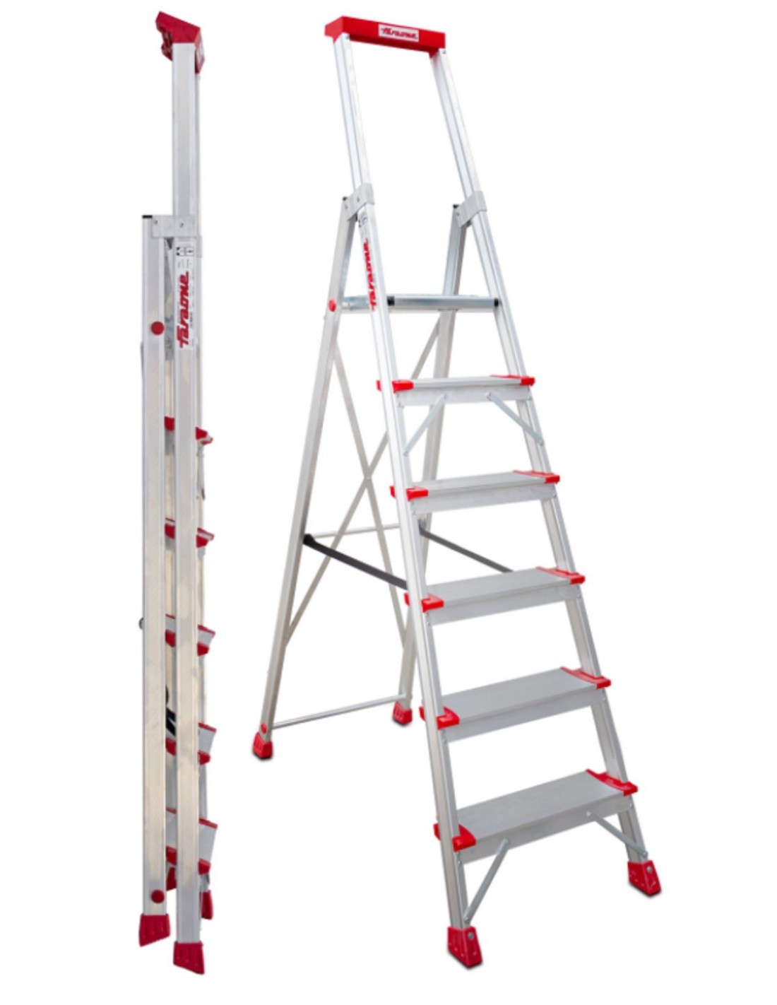 Escalera de tijera en aluminio con peldaños cómodos. 6 peldaños