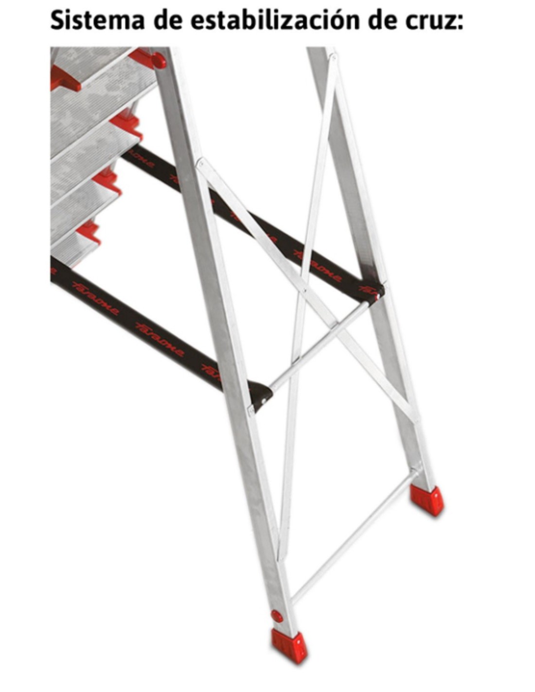 Este producto cumple con la normativa europea EN 131-1,2,3 y se entrega junto con el certificado de conformidad y el manual de instrucciones, la carga máxima que aguanta es de 150 kg.