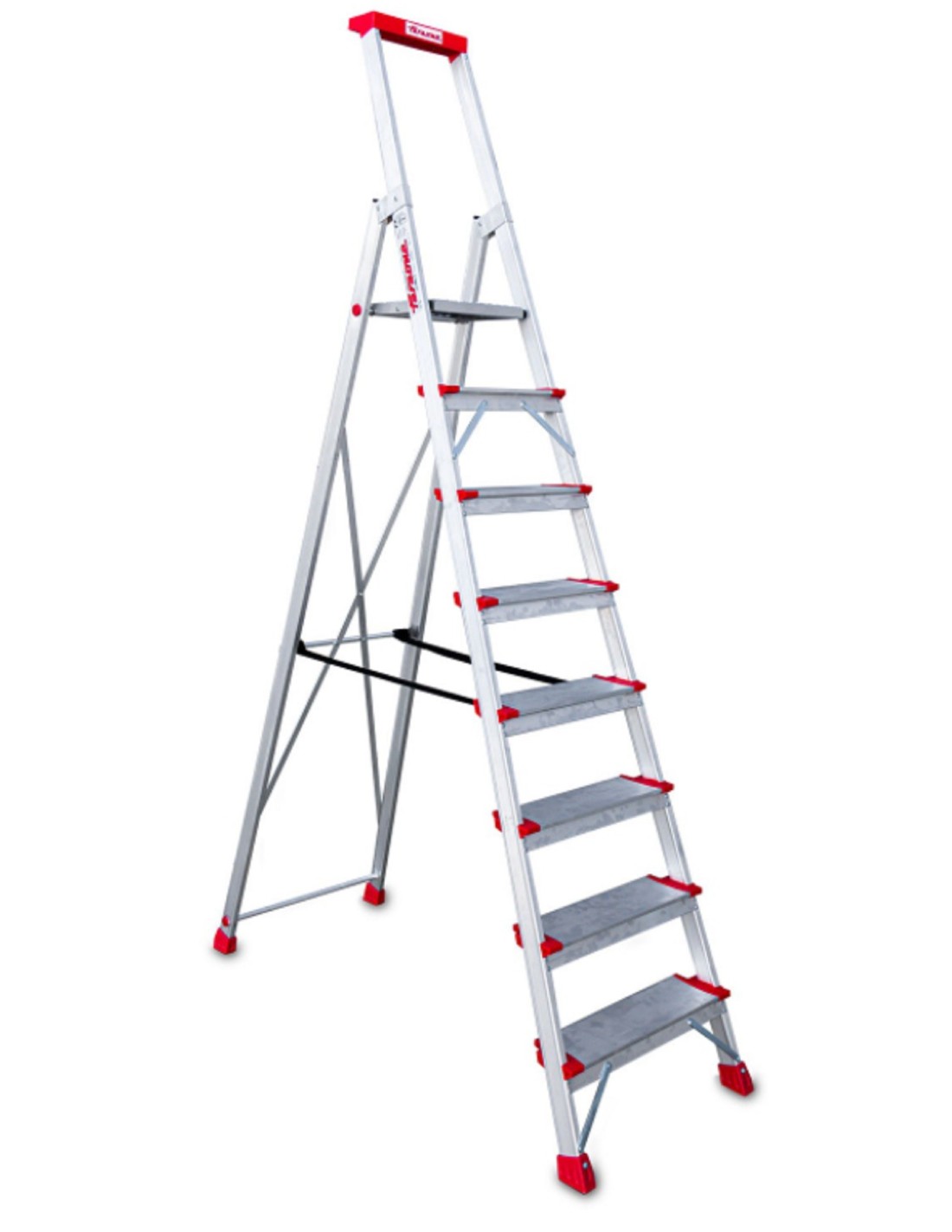Escalera de tijera en aluminio con peldaños cómodos. 8 peldaños