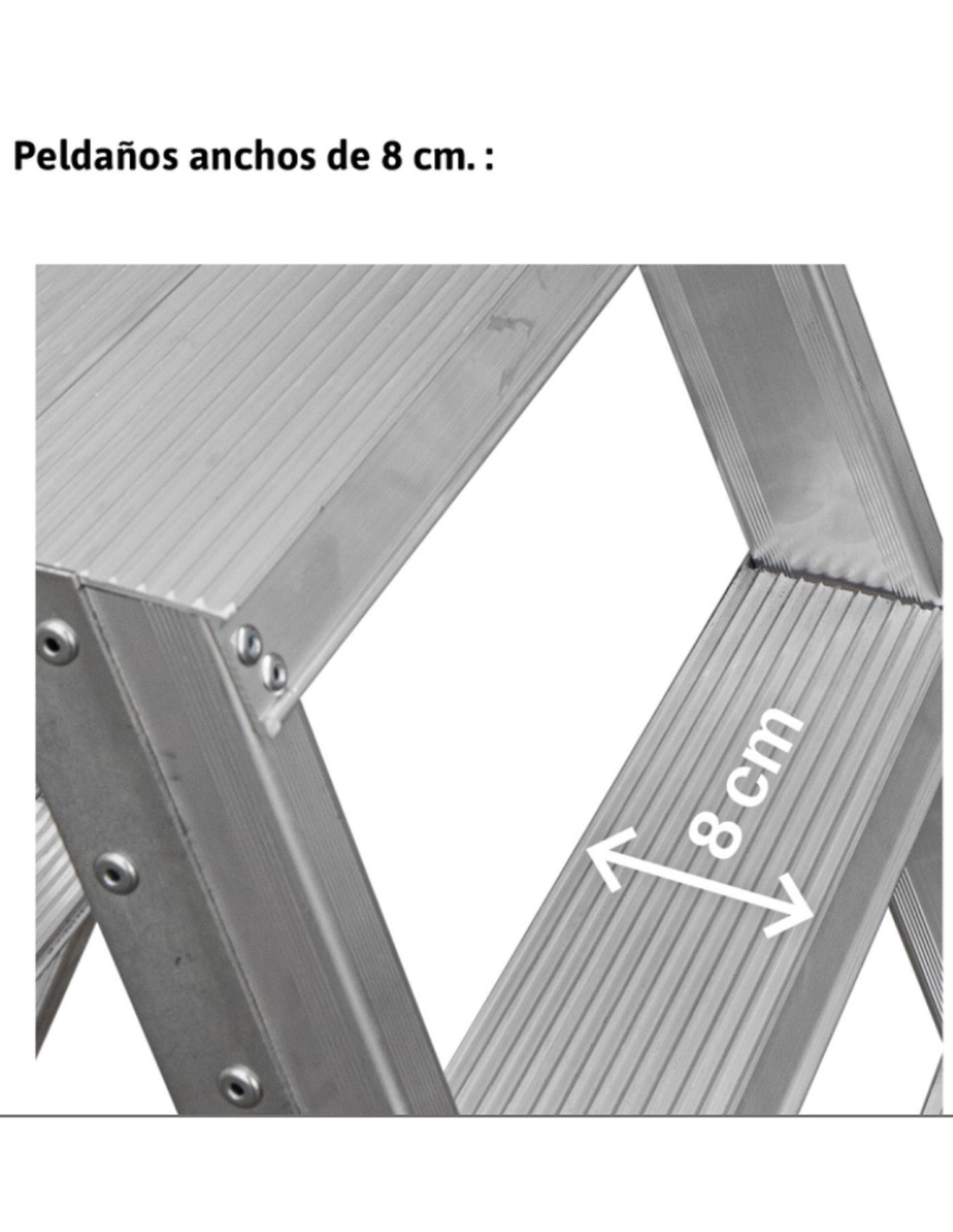 Este modelo cumple con la normativa EN 131-1,2,3. Dispone de certificado de conformidad y manual de instrucciones. La carga máxima que aguanta es de 150 kg.