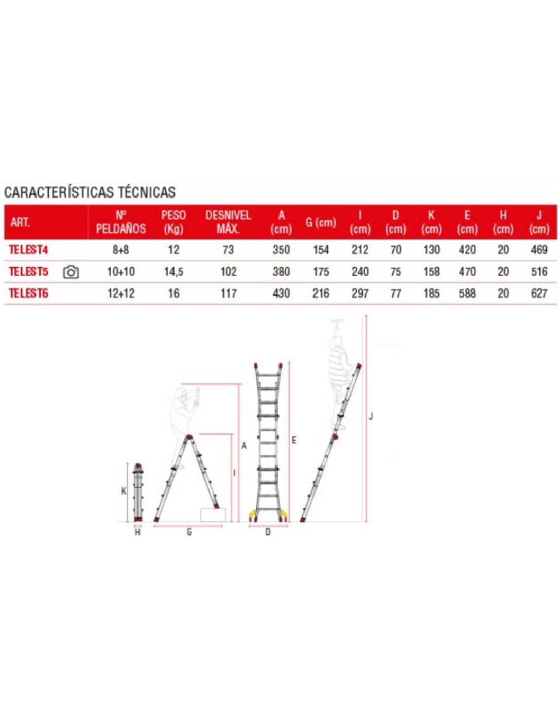 Escalera telescópica de aluminio multiusos súper profesional TELEST6