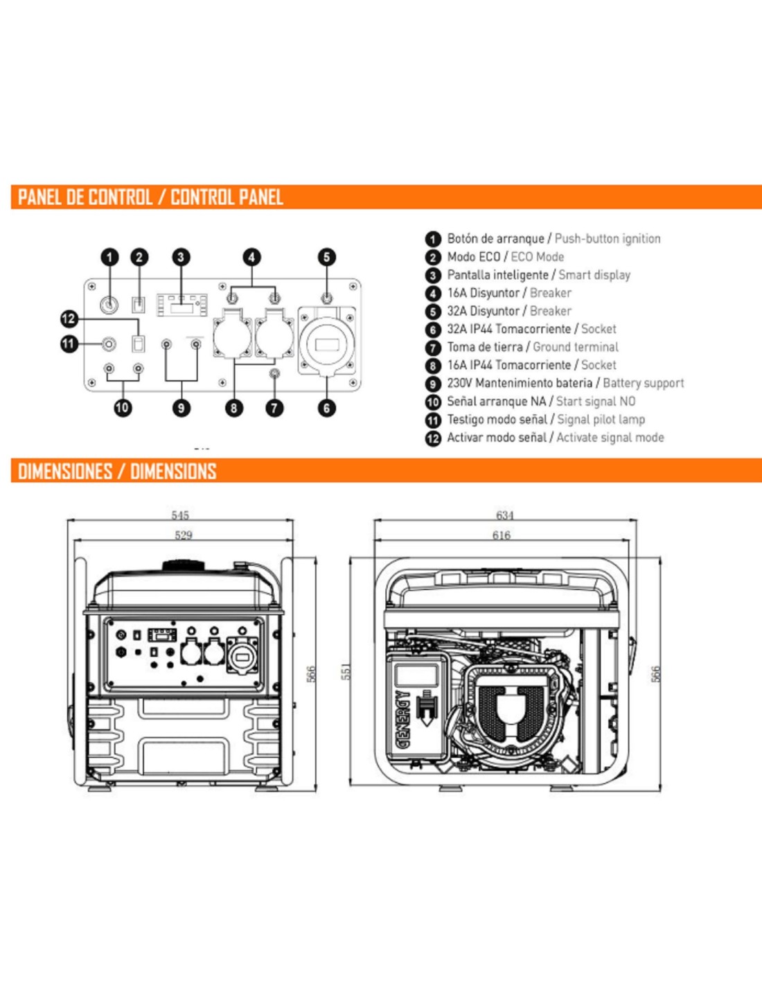 - Modo “ECO drive”, autoajusta las revoluciones del motor a la carga conectada en cada momento, permite un ahorro notable de combustible especialmente con bajas cargas.