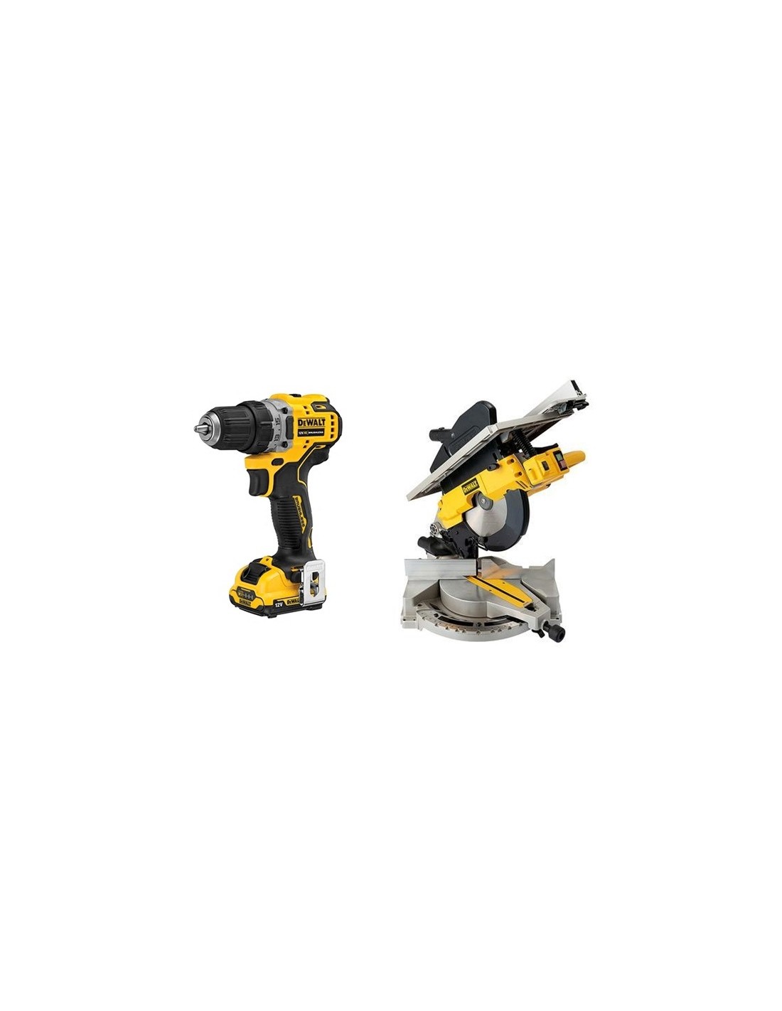 KIT compuesto por Ingletadora mesa superior D27113 + Taladro atornillador 12v DCD701D2 DeWALT