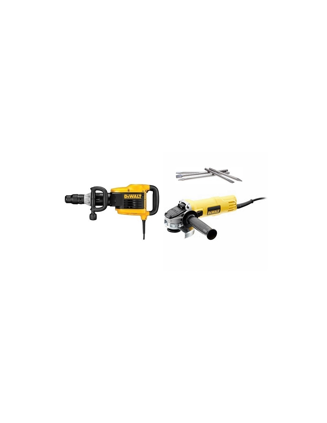 KIT compuesto por D25899K Martillo Demoledor 10kg 1550W 17,9J SDS-MAX + DWE4056 Amoladora 115mm 800W + Conjunto de punteros y cinceles SDSMAXSET2