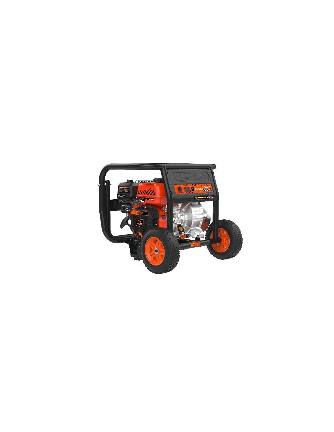 Motobomba para aguas residuales o lodo GUADALQUIVIR 3. Diseñada para agua dulce entre 5º y 40º tiene un Caudal de 55000 L/H altura máxima total 30M, motor de 224CC.