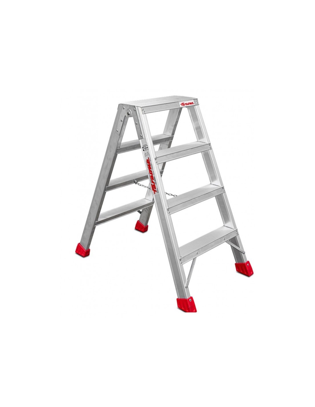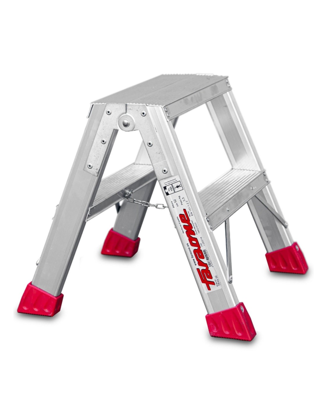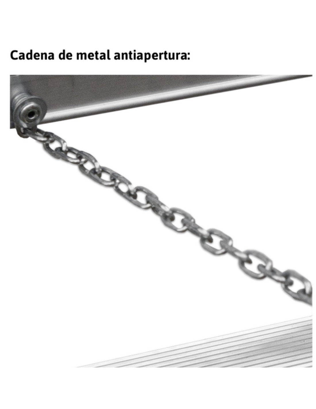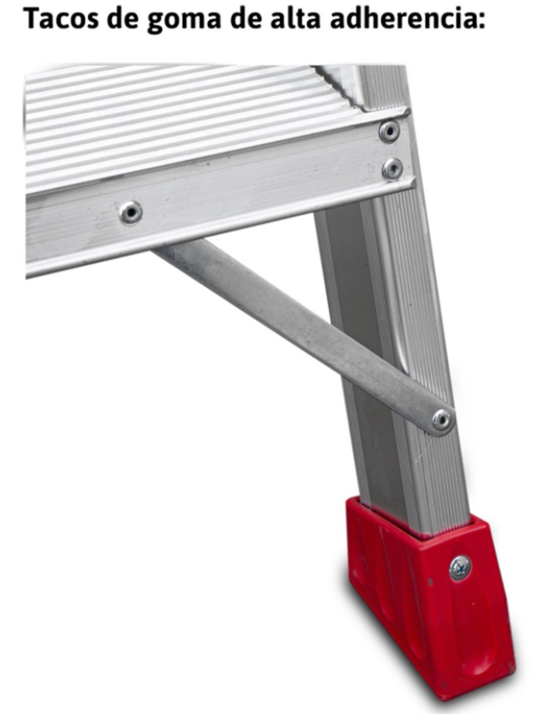 El modelo TPAS está fabricado en aluminio, posee un sistema de bisagras rígido y resistente entre los dos tramos de subida, un sistema anti cierre seguro, peldaños de 8 cm y amplios tacos de goma con un buen agarre a la superficie. Disponible desde 2 a 4 peldaños. Este modelo cumple con la normativa EN-131-1,2,3. Dispone de certificado de conformidad y manual de instrucciones. La carga máxima que aguanta es de 150 kg.