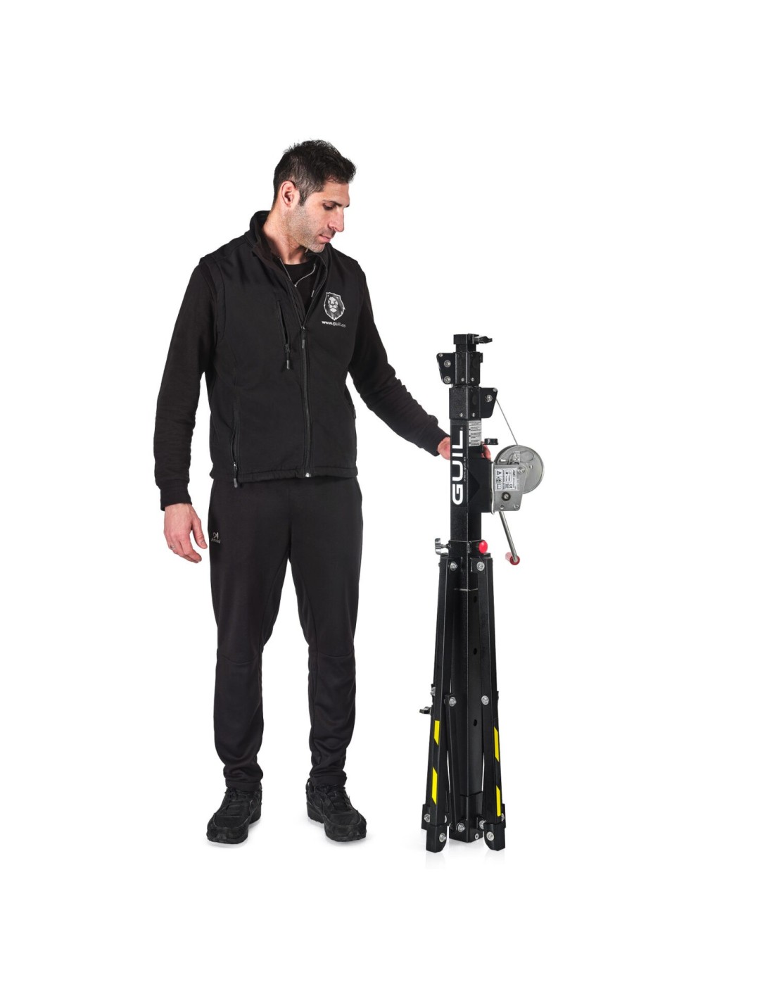 √   Cabrestante autofrenable que evita el retroceso y paraliza la carga a la altura deseada.