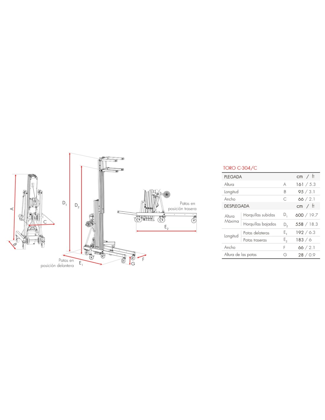 La amplia variedad de aplicaciones, su gran capacidad de carga y su fácil manejo, hacen del Elevador TORO C-304/C el elemento perfecto para cualquier tipo de trabajo.