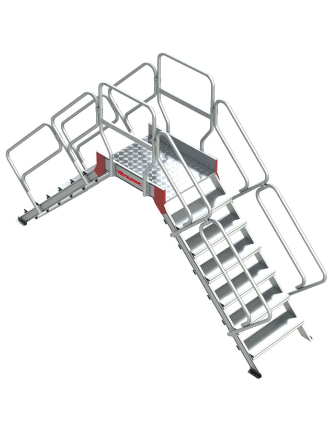 Escalera de doble ascenso con plataforma,base con ruedas y tramo de ascenso a 45º. SP45-11 11 Peldaños