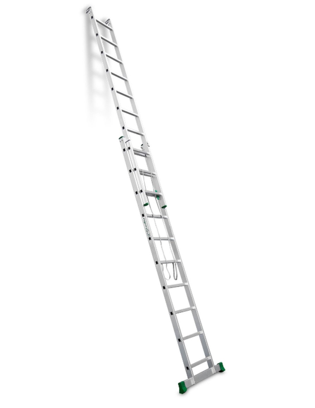 La ES-DOBLE es una escalera de aluminio doble. Al ser una escalera multiusos combinada se puede utilizar como escalera de tijera de doble subida, los dos tramos se pueden extender y se puede usar como escalera de apoyo a pared, se puede poner en desnivel por lo cual es indicada para realizar tareas en suelos desnivelados como aceras o escaleras.