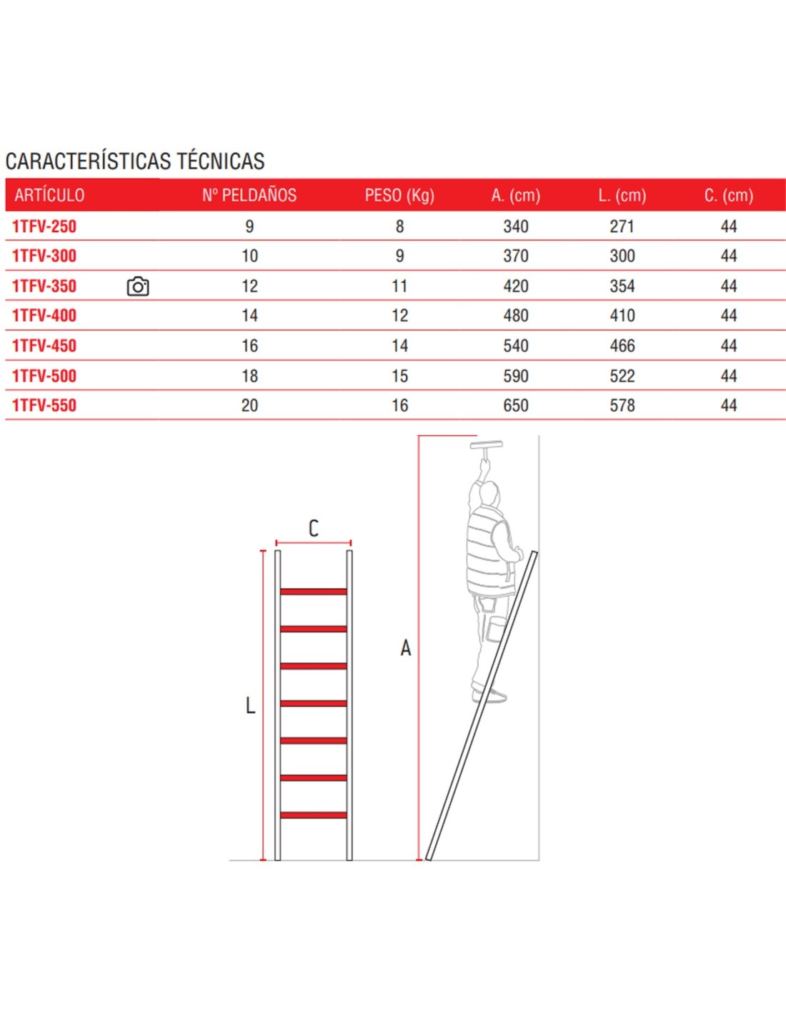 El modelo 1TFV está compuesto de tramos fabricados en fibra de vidrio y equipado con pies basculantes para facilitar su movimiento. Este modelo es ideal para trabajos con riesgos eléctricos. Este modelo cumple con la normativa EN-131 y EN 61478. Dispone de certificado de conformidad y manual de instrucciones. La carga máxima que aguanta es de 150 kg.