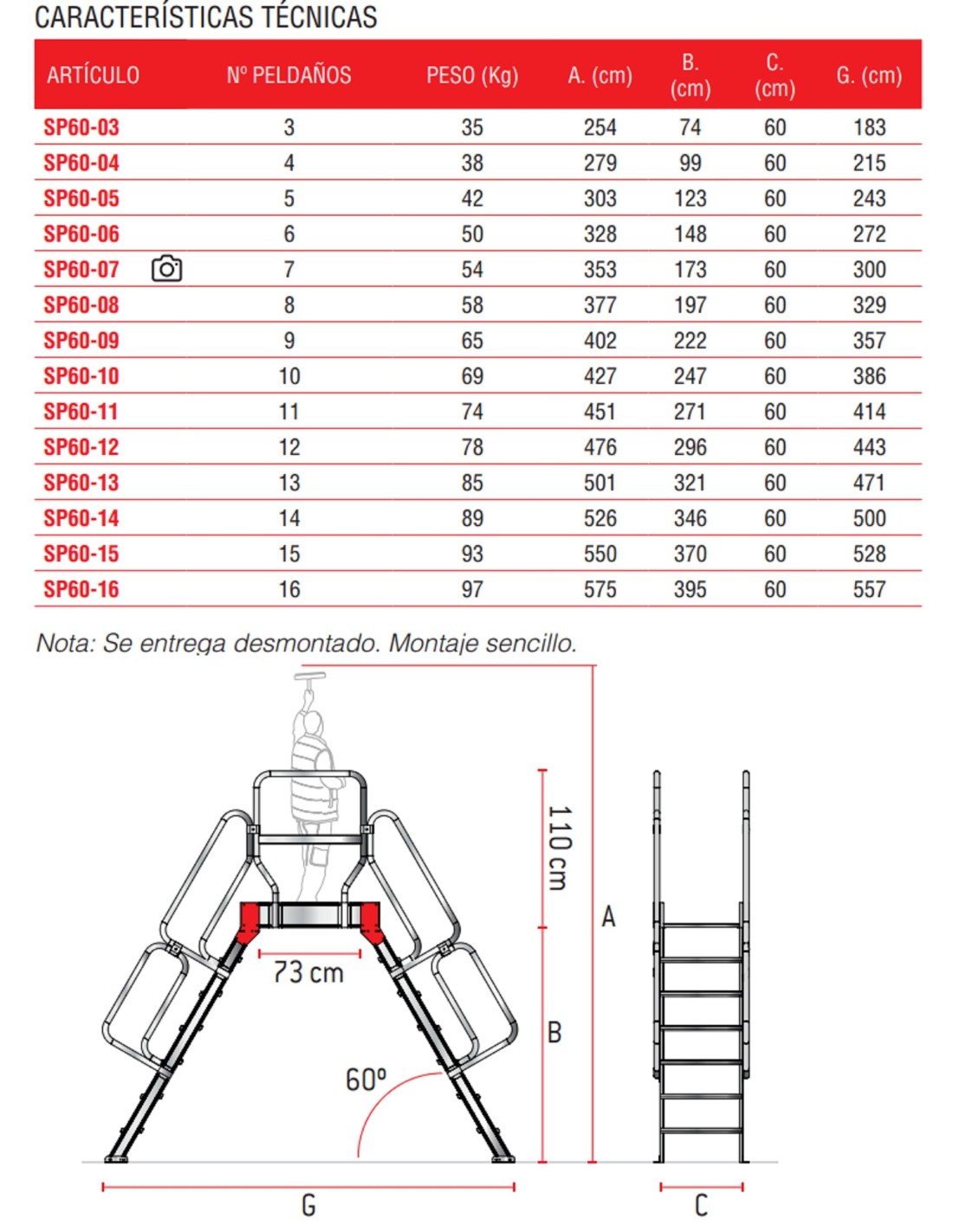 Escalera puente de aluminio con plataforma | Inclinación 60º SP 60-11 11 Peldaños