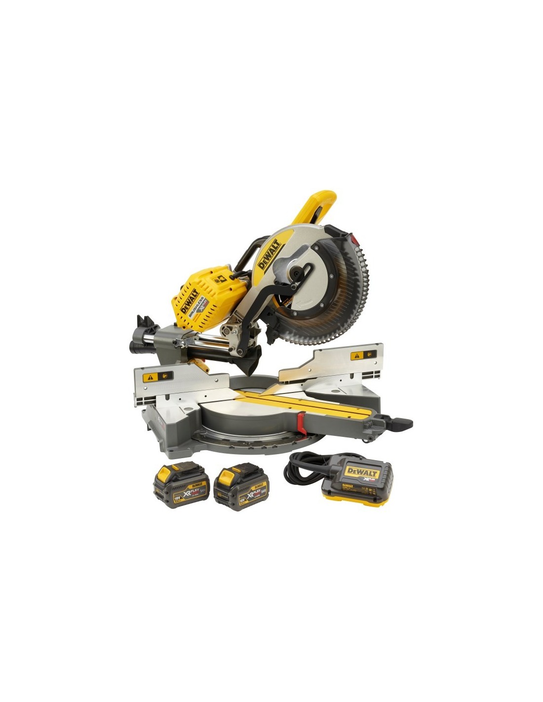 Ingletadora Telescópica sin escobillas XR FLEXVOLT 108V (2x54V) con 2 baterías 54V/18V Li-Ion 6,0Ah-Ø305mm-Electrónica+Luz XPS+Adaptador para conversión a 230V
