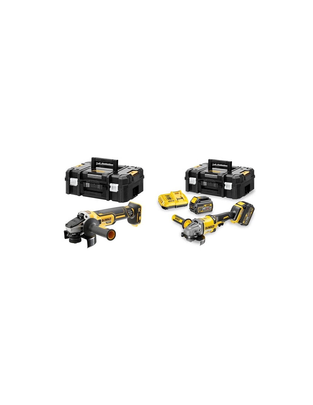 KIT XR FLEXVOLT = DCG414T2 Amoladora 125mm 54V con 2 baterías 54V/18V Li-Ion 6Ah + DCG405NT Mini-Amoladora sin escobillas XR 18V 125mm sin cargador/batería con Freno, Embrague, Arranque Suave, Bloqueo y re-arranque y maletín TSTAK II